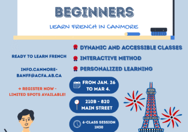 26 Jan 2026 au 27 Jan 2026 820 8th St #201b, Canmore, AB T1W 2B7Envie d’apprendre le français ou de renforcer vos bases dans une.
